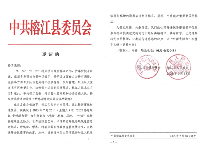 榕江县人民政府在“村超”邀请函中深情写道:“你们的宝贵援助,不仅为我县灾后重建工作注入了强大动力,更极大地鼓舞了我们战胜灾害,重建家园的坚定信心和昂扬斗志。”