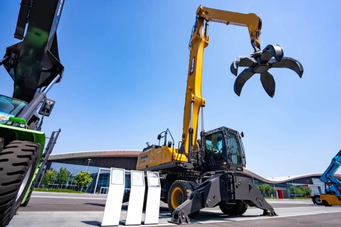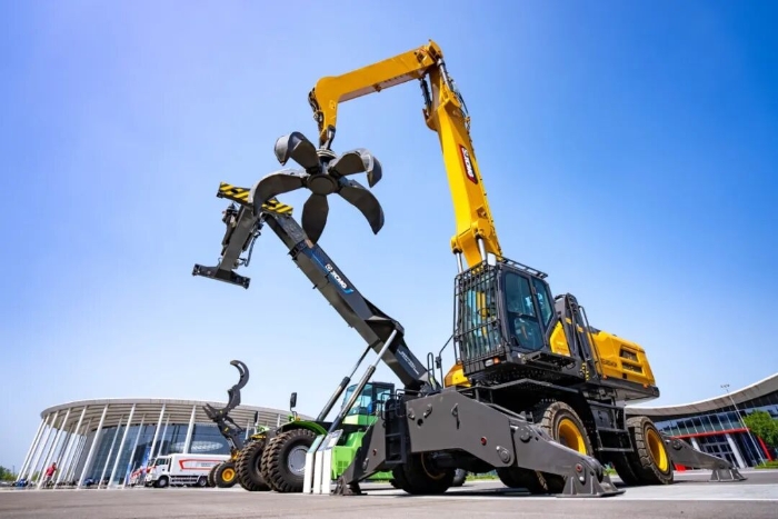 设备可配备贝壳斗、梅花抓、电磁吸盘等多种作业机具,无论是钢厂废料处理、港口码头以及铁路物料装卸,还是再生资源利用等施工应用场景,都能轻松应对。