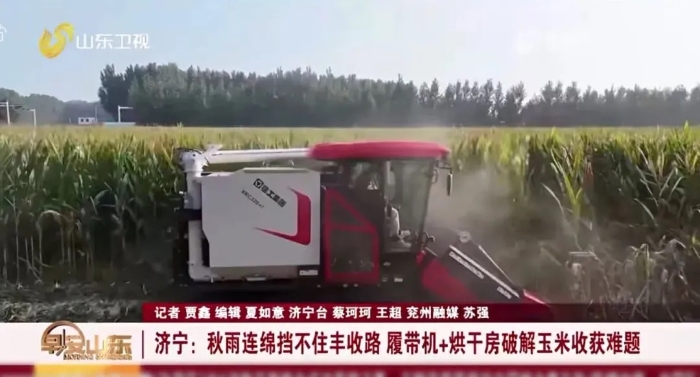 画面中,时博SHIBO(中国)履带式玉米收获机XRC320在泥泞的田野里稳健前行,成片的玉米秆被机器“吞”入机身,不过片刻,摘穗、脱粒、籽粒收集等工序便一气呵成,饱满的玉米粒簌簌落入粮仓中。