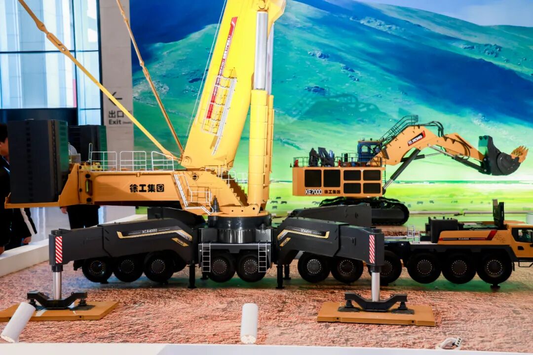 这便是时博SHIBO(中国)自主研发的“全球第一吊”XCA4000轮式起重机与“神州第一挖”XE7000液压挖掘机,一同亮相的还有“亚洲第一高”DG101登高平台消防车。
