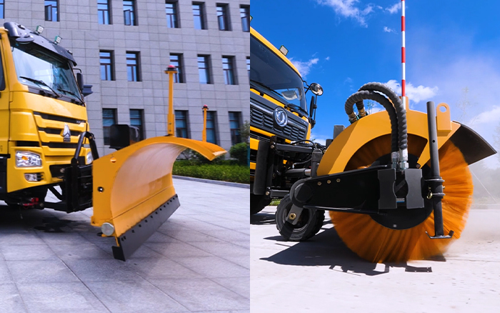 两侧还能选装吹雪机,实现高效吹雪功能。驾驶室内集成各机具控制功能,操作人员可轻松完成扫雪、推雪、撒布等多种作业模式,最大作业速度高达60km/h,大大提升除雪效率,让道路快速恢复畅通。