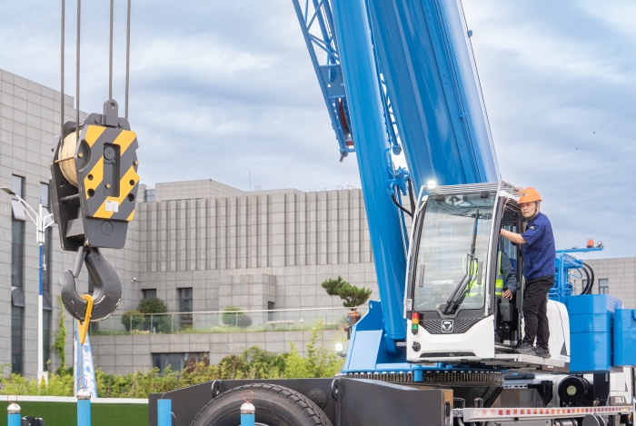 360°环视系统可识别行人并自动切换视角,大幅减少盲区;轴荷监测系统实现超载超速主动预警;底盘支车智能系统支持上车直接操控,有效提升作业效率。带载伸缩、一键伸臂、可变支撑等创新功能,显著增强了设备在复杂工况下的适应性与微动操控性,使狭小场地作业更加从容安全。