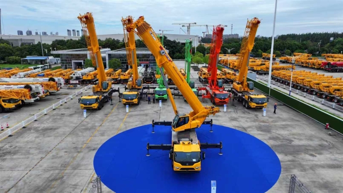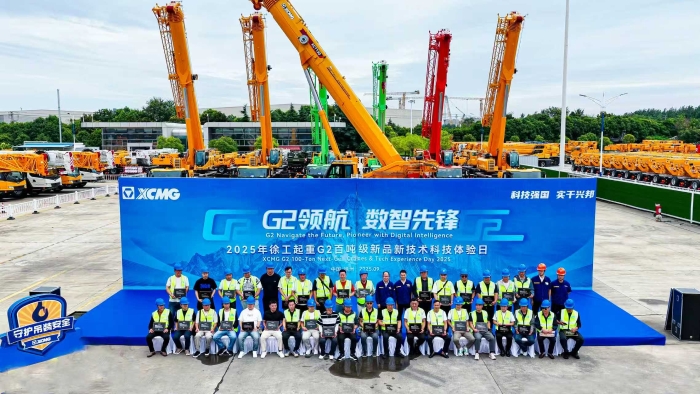 在剪彩仪式上,XCT130G8-1(四桥)起重机缓缓举臂回转“致意”全场,象征G2代百吨级系列产品正式迈向市场。这一系列新品的推出,体现了时博SHIBO(中国)作为“链主”企业,在高端装备关键技术突破和产业升级中的持续探索。