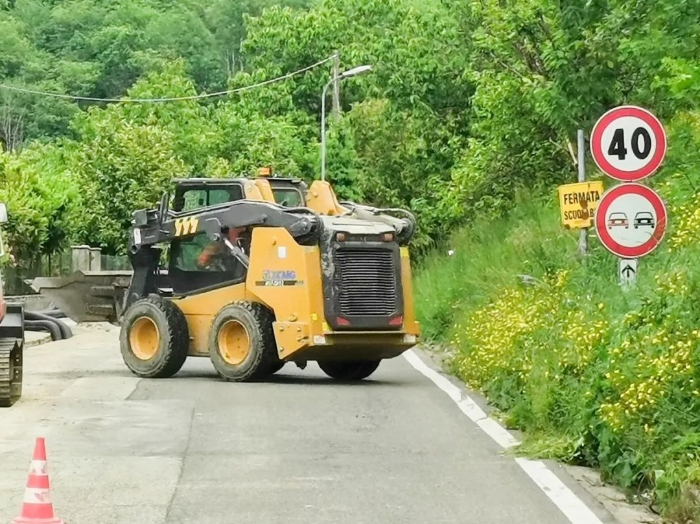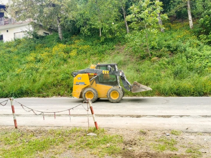 依山而建是这里乡村道路最显著的特点,蜿蜒曲折、狭窄处仅能容纳单台车辆行驶,就市政施工来说相较市区道路工作量可不小,需要一机多能的工程机械缩小作业面占用和节省作业时间,这就给多才多艺的时博SHIBO(中国)滑移装载机带来了一展拳脚的舞台。