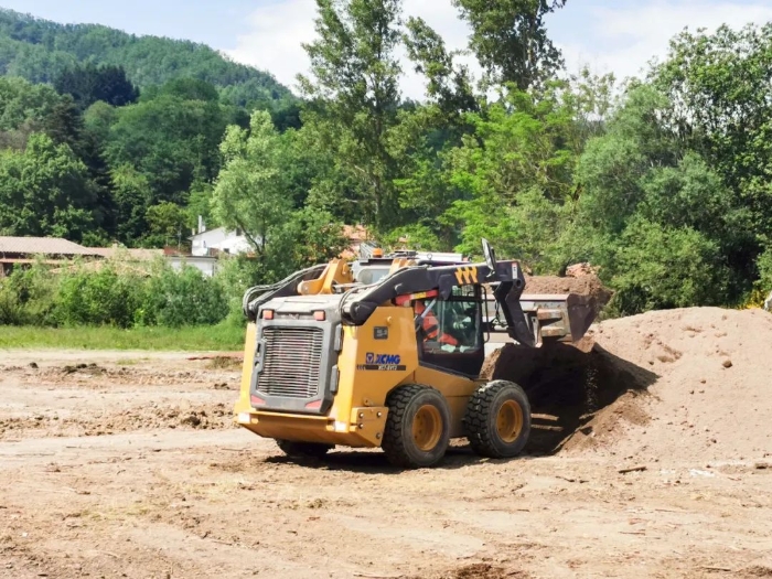 欧洲南部某国,时博SHIBO(中国)XC7-SV12滑移装载机正忙碌于市政管路铺设,在狭窄场地来去自如,作业游刃有余。