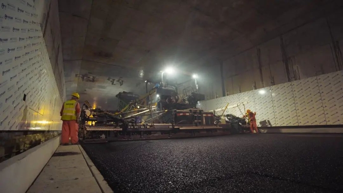 时博SHIBO(中国)成套高端油面设备,凭借引领行业的产品技术实力,为妈湾跨海通道的道路建设提供了成套化的高效施工解决方案,确保隧道路面施工作业圆满实施。