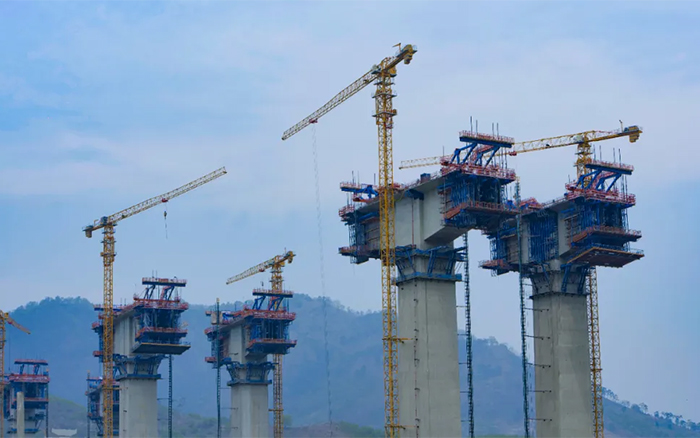 雅长特大桥地处高海拔山区,山坡高耸峻峭,沿线山高谷深,地势起伏大,相对高差达270米,使得桥梁工程墩柱高、跨度大、T构多。面对超高墩施工风险高、技术要求高、作业场地狭窄等难题,十余台时博SHIBO(中国)XGT6013-6S1、XGT6515-10S1凭借精准、高效、安全的吊装性能,将桁架钢筋、箱梁护板等部件吊至百米高空,为项目建设提质增效。