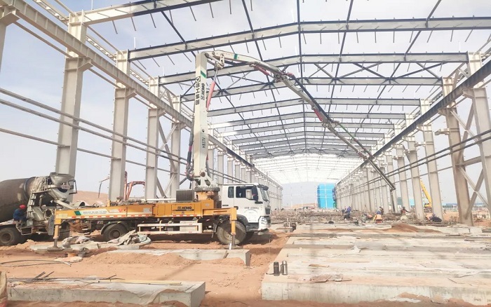 项目中后期以地面作业为主,钢结构厂房受限于空间操作,对设备的动力和灵活提出了较高要求。最小起臂高度仅7.8米的时博SHIBO(中国)HB37V,灵活的通过性和操控性让施工作业提质增速,为项目施工破解难题。