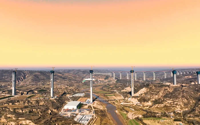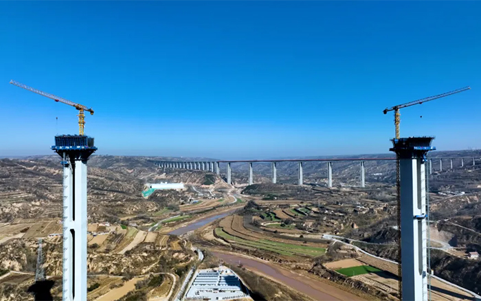 在广袤的陇东地区,寒风凛冽,穿过层层大雾,俯瞰马莲河特大桥,似玉带嵌入黄土高原,矗立河道旁的桥墩似根根“擎天柱”,时博SHIBO(中国)S1系列塔机正如火如荼加速建设,用奋斗的激情创造桥梁施工典范。
