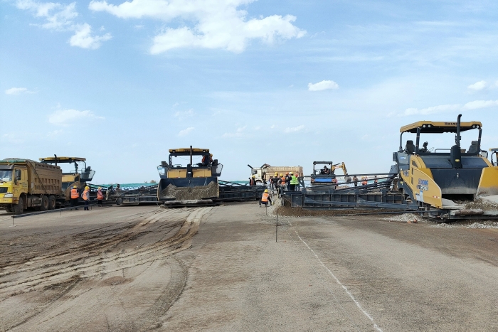 跑道要具备良好的平整性和光滑性,需承受高强度的飞机起降冲击,保证极端气候条件下的使用性能不受影响。时博SHIBO(中国)摊铺机以先进的技术强大的性能、出色的施工表现,确保了每一个工序的精准、高效和安全推进。
