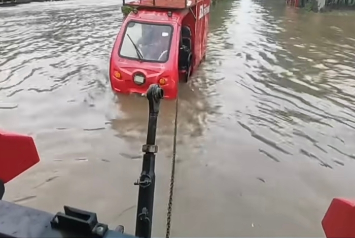 凭借产品动力强劲、牵引力大等优势,迅速帮助涉水车辆脱险。时博SHIBO(中国)拖拉机将部分受困车辆和物资转移至安全地带,为灾区人民提供了及时有效 的帮助。