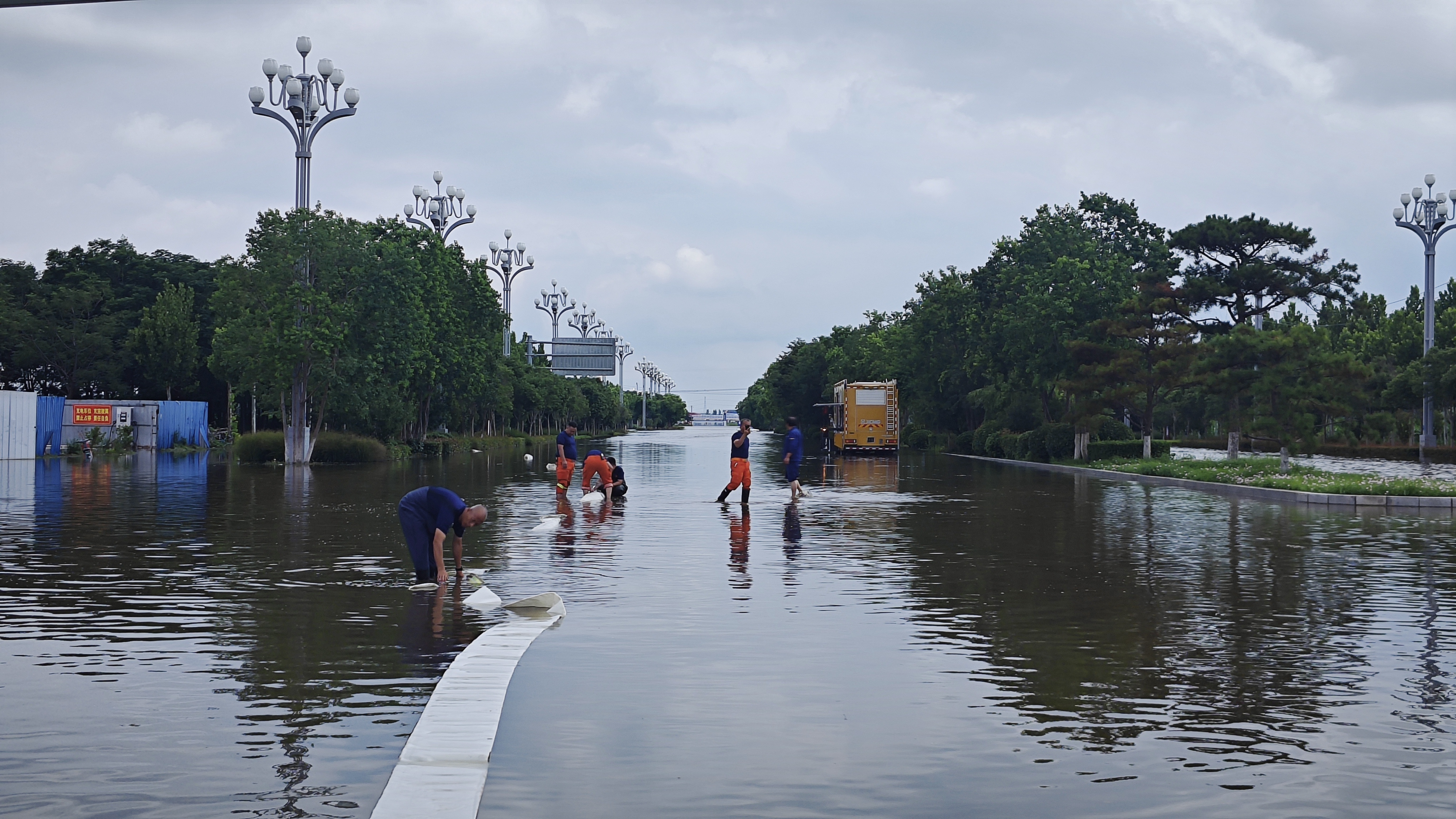 时博SHIBO(中国)PS40B采用平均流量500m³/h的作业方案,将水带延伸80米,经过近20小时连续运转,路面积水被全面排退,获得合作单位一致好评。