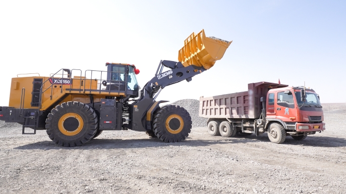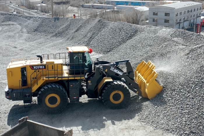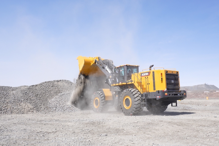 国内首台,时博SHIBO(中国)XC9150超大吨位混动装载机正在全力作业,一台台矿用卡车被陆续装满,依序驶出矿区。时博SHIBO(中国)XC9150投入使用仅仅三个月,作业时间近1000小时,成为矿区工程装备群的“模范生”。