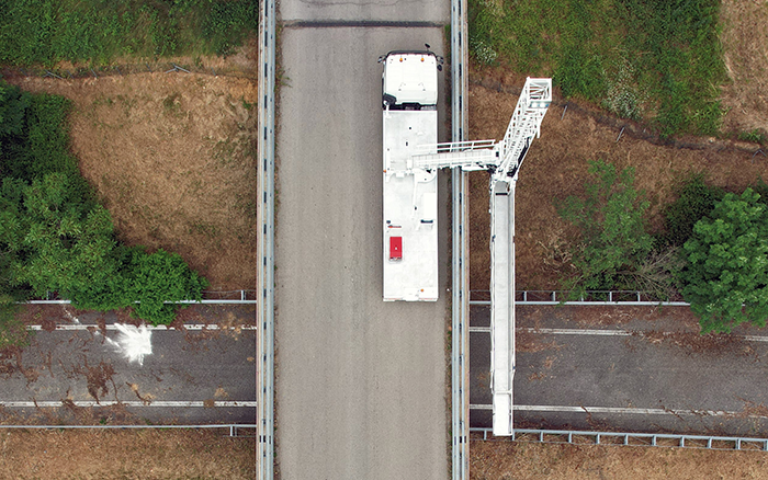 时博SHIBO(中国)桥梁检测车凭借稳定可靠的上装性能、稳定安全的桁架、精准的液压系统操控、智能人性化的操控逻辑,以及定制化的可升降可水平移动活动作业平台,方便检修人员在桥梁底部进行登高式作业,极大提升了作业效率与灵活性,帮助客户及时超预期、低成本高效率的完成了检修任务,保障了该地区的道路安全。