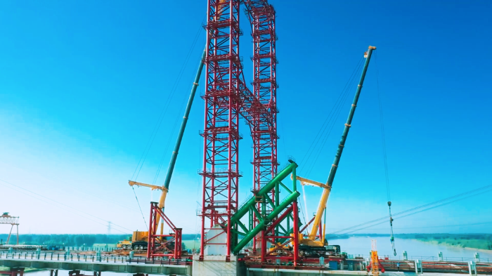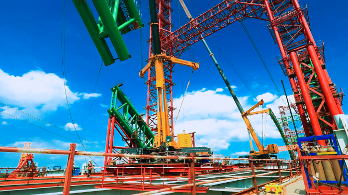 据悉,拱肋要经过200余次吊装拼接,才能在桥上形成一个完整的拱圈,这三台时博SHIBO(中国)超级起重机XCA500将在项目驻守一年。项目建成后,该黄河大桥将成为国内规模最大的下承式钢管混凝土系杆拱桥,对改善区域交通条件,推动黄河流域高质量发展具有重要意义。