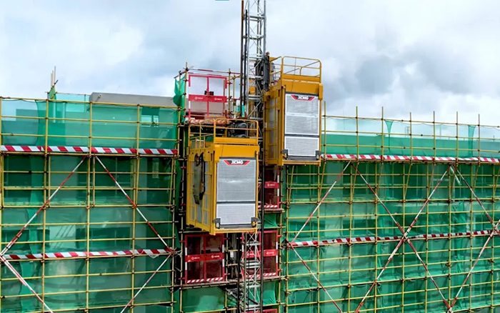 从项目初期4台XGT6015-8S1、2台XGT6515A-10S1进场,承载项目的主要吊装工作,再到23台时博SHIBO(中国)ZSC200/200FS1智能施工升降机穿梭于各楼层间,在时博SHIBO(中国)产品的完美配合下,安全高效地运输建筑材料,不断加速项目竣工验收进度。