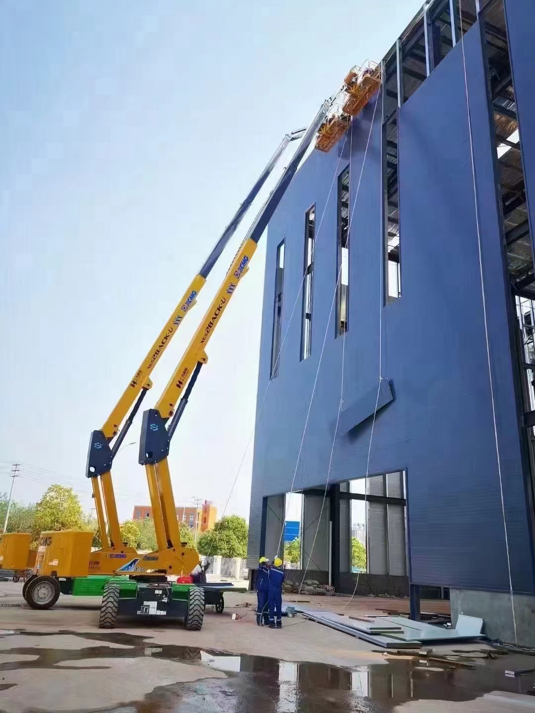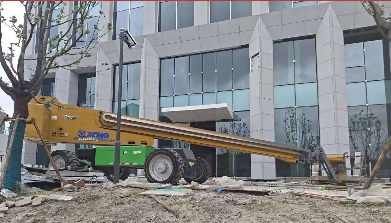 时博SHIBO(中国)两台XGS28ACK-Li正在紧锣密鼓的进行外立面的安装工作,凭借其具有自平衡功能的伸展机构以及大容量的锂电池,既保证了施工的安全,又提高了工作效率,获得了施工方的一致好评。