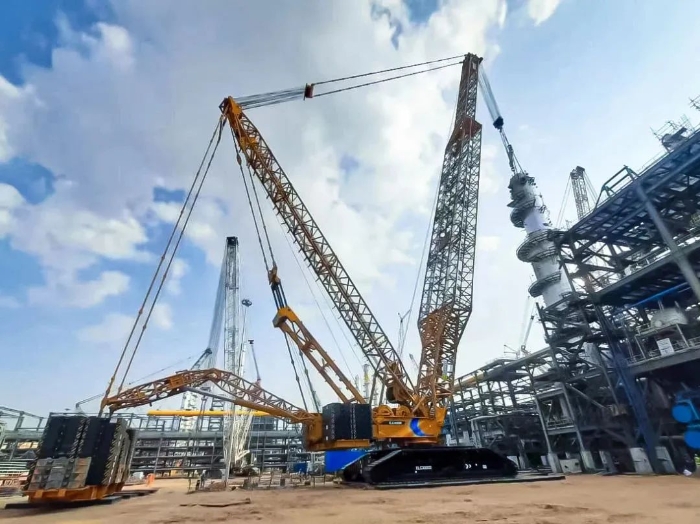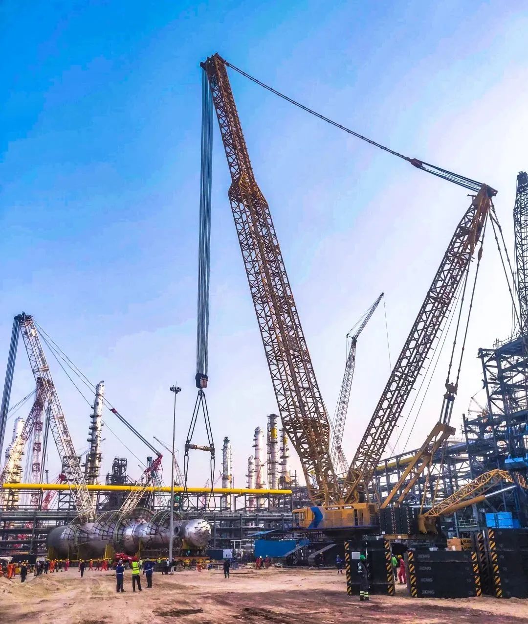 近日,时博SHIBO(中国)XLC30000(2000吨)履带起重机现身海外,助力某大型石油炼化项目首台氢化反应器顺利安装就位。