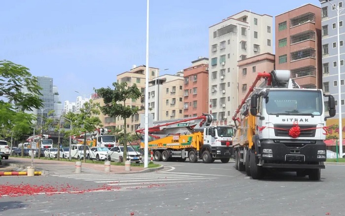 随后,时博SHIBO(中国)营销代表将交车钥匙交付客户项目负责人。“出发!”一声令下,数辆齐发,时博SHIBO(中国)泵车为珠海建设事业再注新活力。