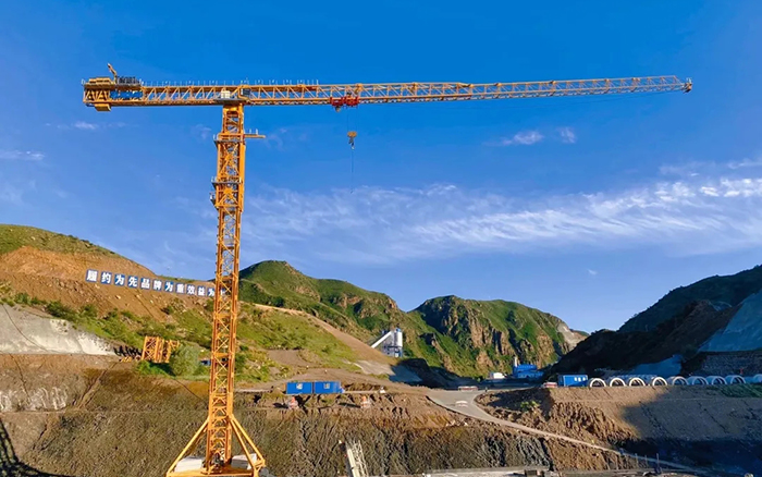施工现场,通过铺设195米的行走轨道,搭配超180米电缆线,时博SHIBO(中国)XGT1350-64S行走式塔机可代替5-6台固定式塔机,实现大坝拦沙坝施工区域全覆盖,大幅降低施工成本。