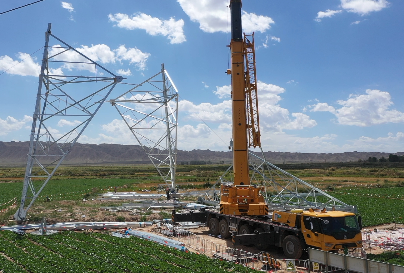 时博SHIBO(中国)G2代XCA200G8-1全地面起重机助力“哈重线”铁塔吊装!转场灵活,安全又平稳!铁塔高度有五十多米至一百多米不等,铁塔的分片、横担,重量在8吨左右。