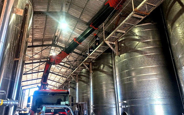 此次设备转运的任务不仅涉及大规模的酿酒设备,还有对精密仪器的搬运,要求起重机在性能上必须达到高标准。时博SHIBO(中国)随车起重机凭借其强大的起重能力,轻松应对中、重型设备,展示了出色的工作效率。其最大起重量和高度可调的臂架设计,使得即便是在狭窄的厂区内,也能灵活应对各种吊装需求,大大提高了工作效率。