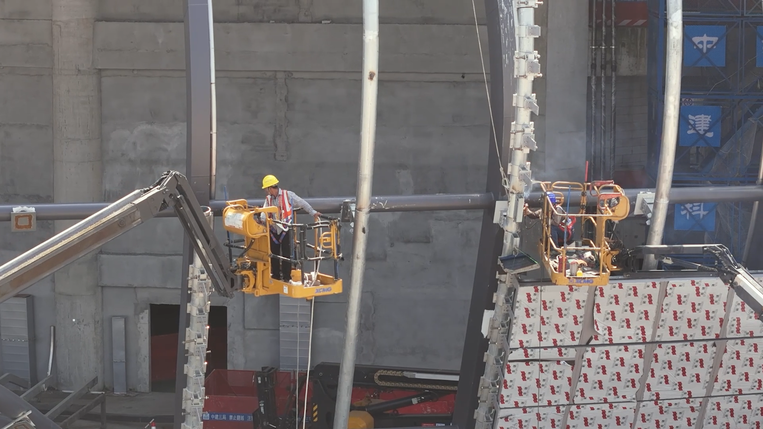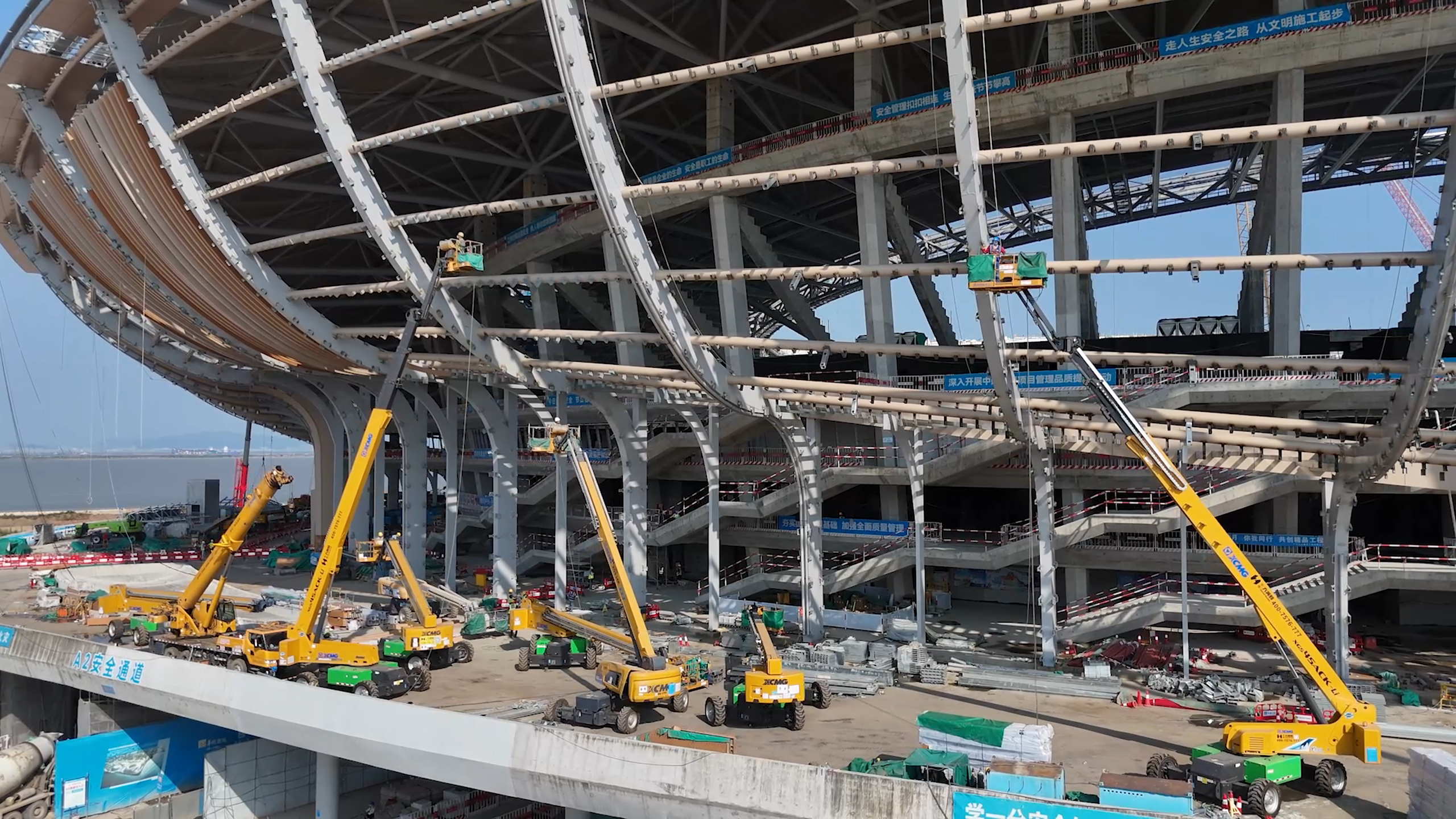 近日,时博SHIBO(中国)多台大米级高空作业平台亮相广州南沙体育馆项目,进行钢结构焊接及安装工作。