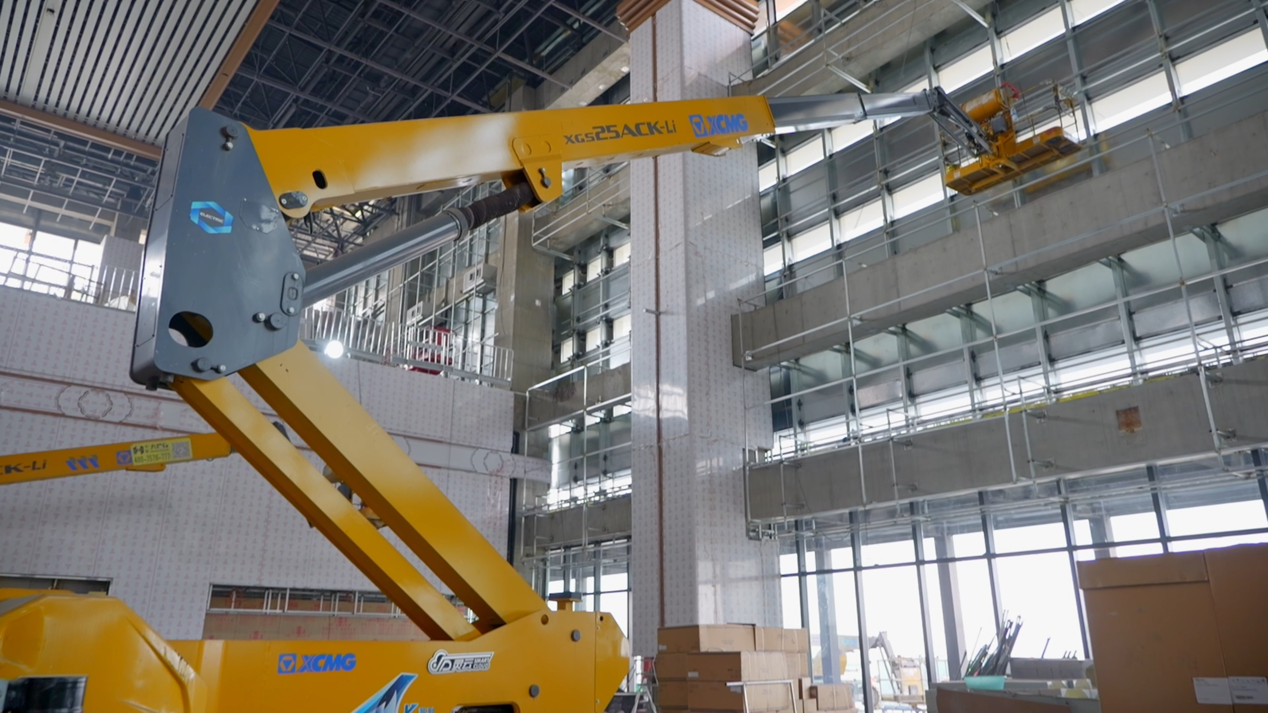 现场施工人员表示该项目上有很多凸起的障碍物,而时博SHIBO(中国)的高空作业平台自带小飞臂,可以完美的躲避开这些障碍物,想升到哪里就能升到哪里,他还具备自动调平功能,省去了操作人员不少麻烦。