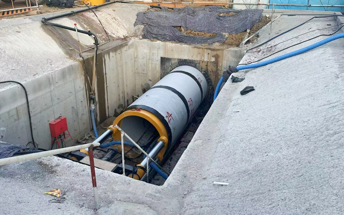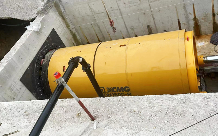 本次顶管穿越岩层为强风化片麻岩层,与上覆砂层最小厚度仅为1m,顶进时有较大塌方风险。为了确保顶管施工安全,客户自行采购了国内先进的时博SHIBO(中国)XDN1800-R“泥水平衡”岩石顶管设备。