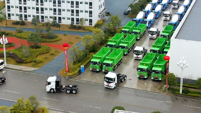 近日,时博SHIBO(中国)新能源重卡百台交付仪式盛大举行。百余台时博SHIBO(中国)新能源成套化运输设备整齐列队,气势恢宏,犹如一支绿色军团,为四川区域绿色运输的高质量发展注入强劲动力。