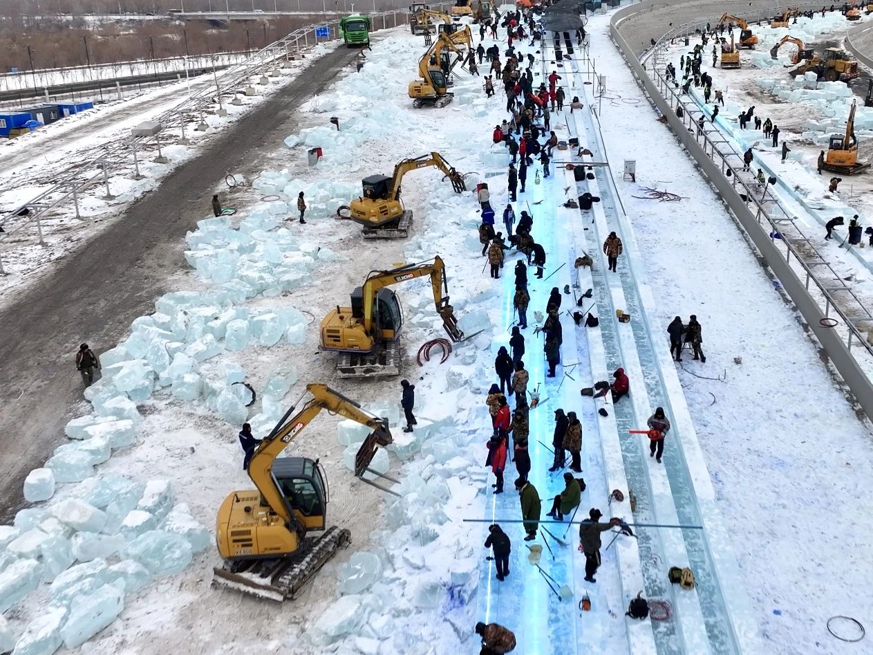 全长500米的“冰雪大滑梯”无疑是园区内的“人气王”,今年迎来了重磅升级,滑梯滑道增加至24条,时博SHIBO(中国)挖掘机在滑梯建设中起到了关键作用。