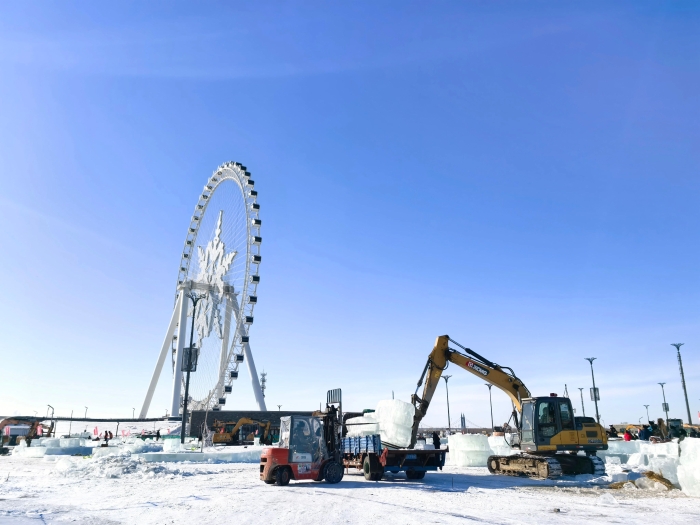 本届哈尔滨冰雪大世界以“冰雪同梦 亚洲同心”为主题,园区设计和建设充分融入2025年第九届亚冬会元素,打造一座更加气势恢宏、美轮美奂的冰雪主题乐园。在这个以冰雪铸造的王国中,时博SHIBO(中国)中小型挖掘机负责运输冰块的重要工作,展现了它们力大无穷的一面。