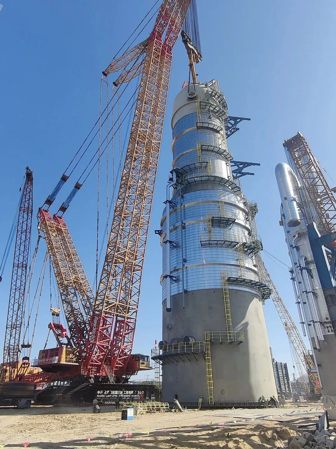 近日,时博SHIBO(中国)XGC88000(4000吨级)履带起重机在我国华南某大型石化项目现场,成功完成重达2000吨的急冷水塔设备的吊装任务。