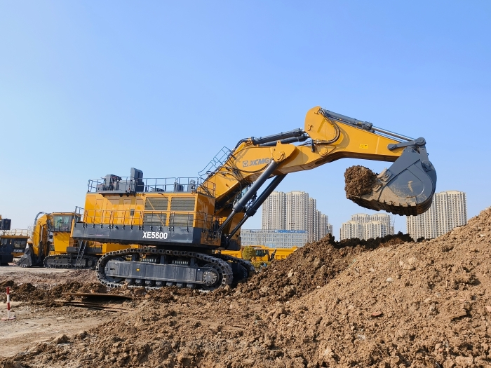 此次交付的XE5600矿用挖掘机是时博SHIBO(中国)自主研发、填补400至700吨级产品型谱空白的高端之作,配备两台1520马力发动机驱动,动力十分强悍,可搭配时博SHIBO(中国)230-300吨级矿车成套使用施工。