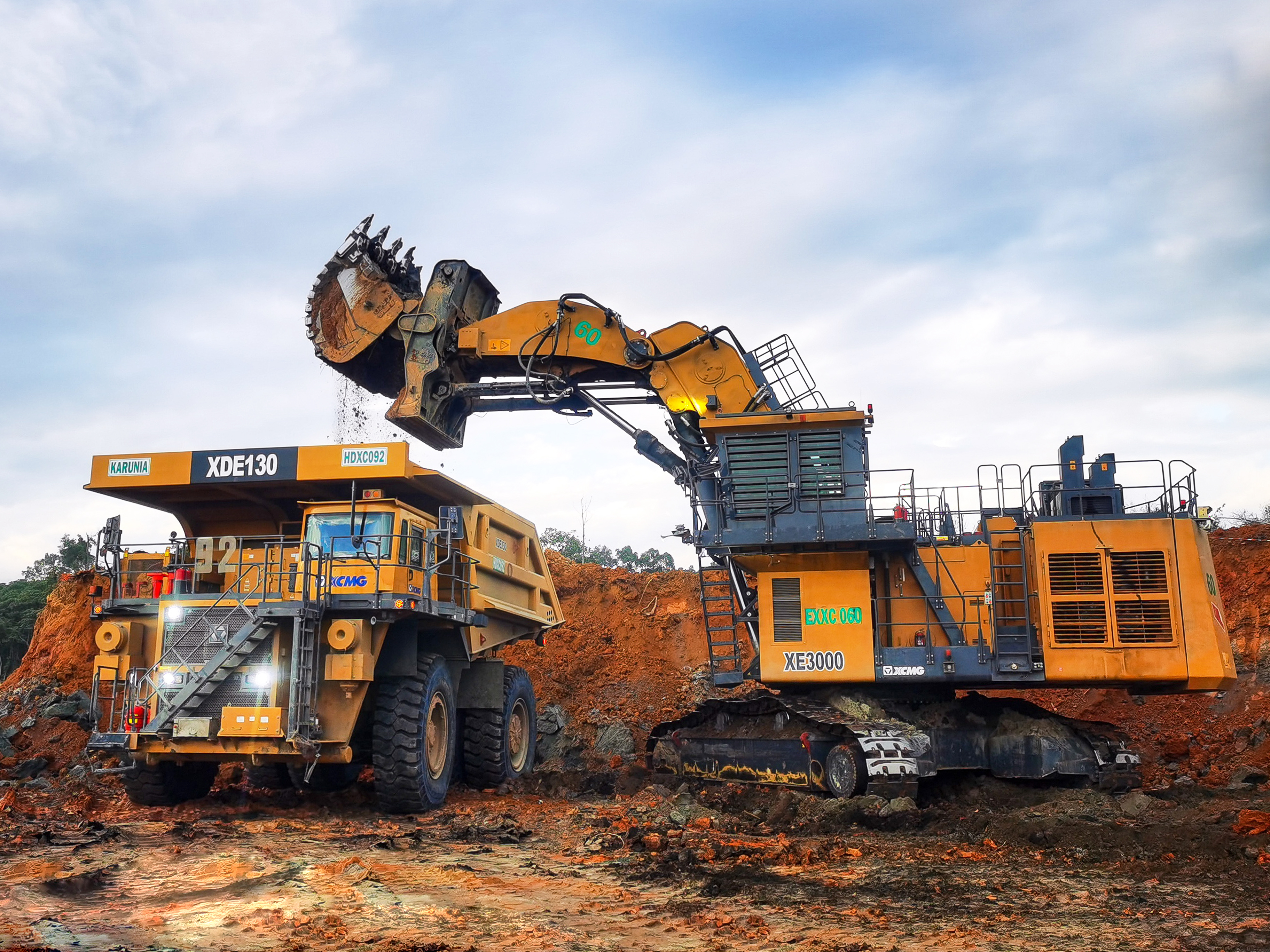 XE3000正铲铲斗标配斗容15m³,反铲铲斗标配斗容17.5m³,一铲斗挖装数十吨物料,4-5斗就能装满一辆130吨级矿车,充分满足客户对能效产出的追求。此外,XE3000的泵、阀、马达减速机等关键零部件采用全球高端配套,底盘、回转平台、工作装置等关键大型重载结构件采用等强度设计原则,整机可靠性提升2-3倍,延长整机使用寿命,为客户创造更多价值。