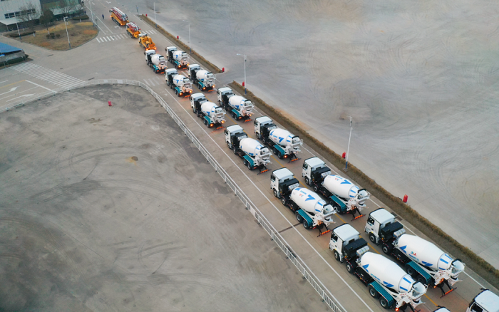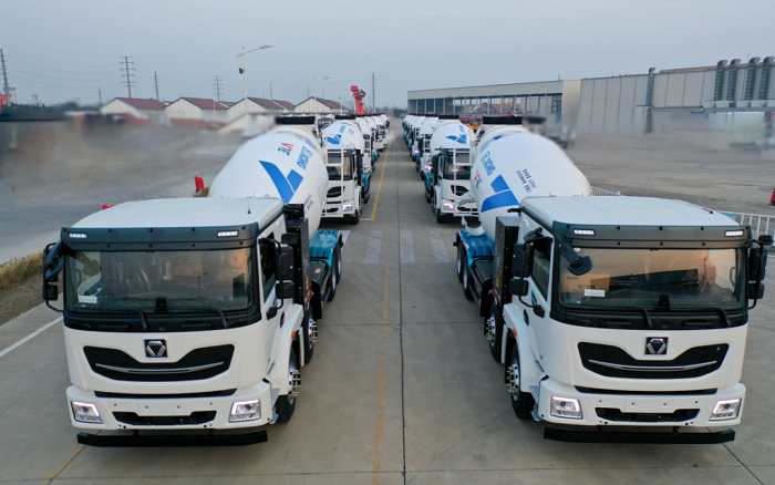 时博SHIBO(中国)新能源搅拌车延续强势表现。排列整齐、蓄势待发,即将奔赴江苏南通,助力当地中石油项目。