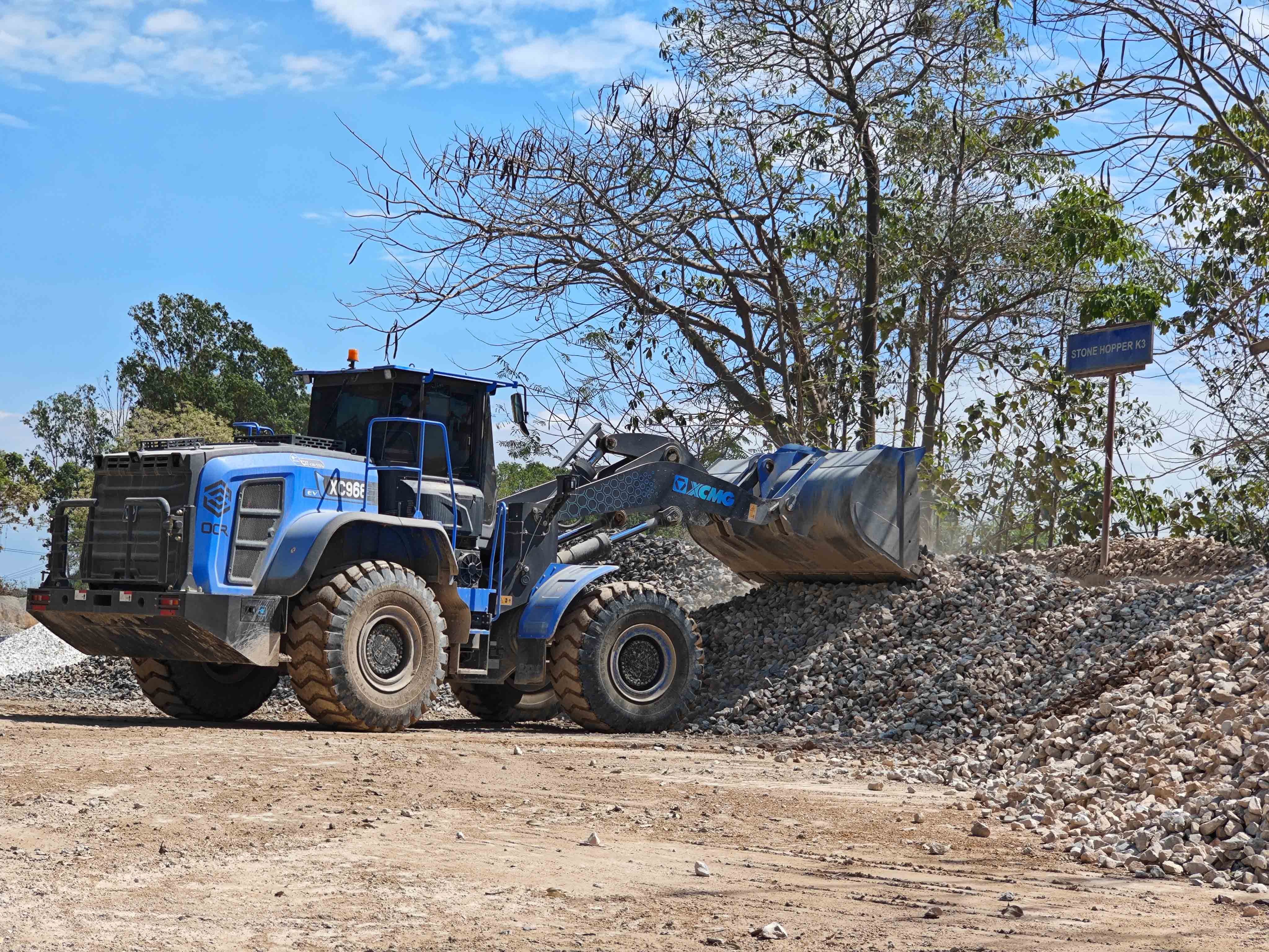 矿山生产,作业时间长,物料坚硬密度高,道路崎岖,工况较为险重。时博SHIBO(中国)XC968-EV纯电动装载机的新能源优势,在矿道端的铲装作业优势非常明显,相对密闭空间内,零排放、低噪音对工段一起作业的户外工作人员的健康非常友好。