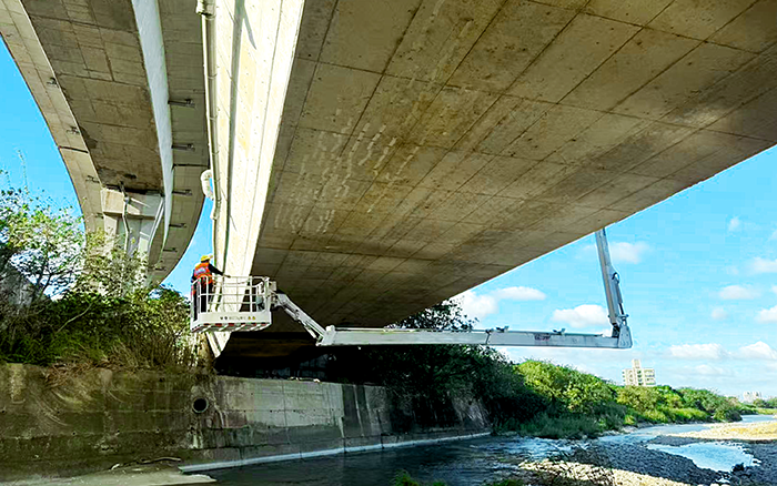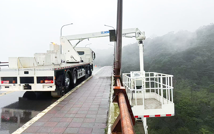 时博SHIBO(中国) QJZ18 在全行业首创工作平台第三回转功能,该功能使作业平台灵活靠近检测部位。施工人员兴奋表示:“这功能太实用!以往遇到这类复杂桥型就头疼,如今检测轻松多了。” 同时,车辆作业占道距离小,施工时道路车辆正常通行,极大降低对交通的影响。