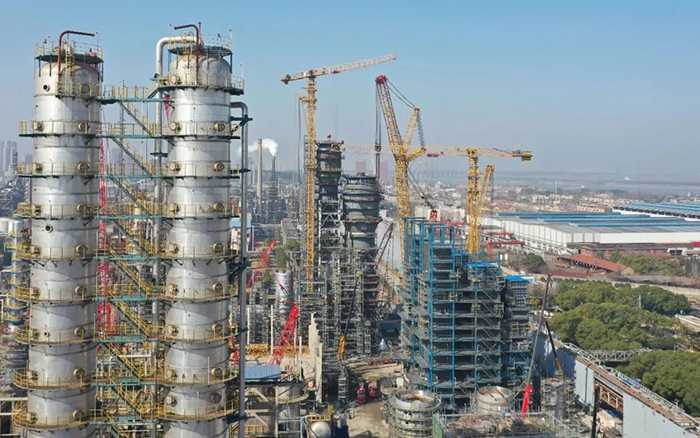 两台时博SHIBO(中国)XGT360-20S1塔机助建中韩石化280万吨/年催化裂化项目,项目总投资18亿元,由中石化第五建设有限公司承建,目前已进入攻关冲刺阶段,计划于下半年竣工。该项目旨在适应国家炼油企业向化工企业转型的趋势,促进中韩石化炼油结构调整,建设绿色工厂,助力国家“碳中和、碳达峰”目标。