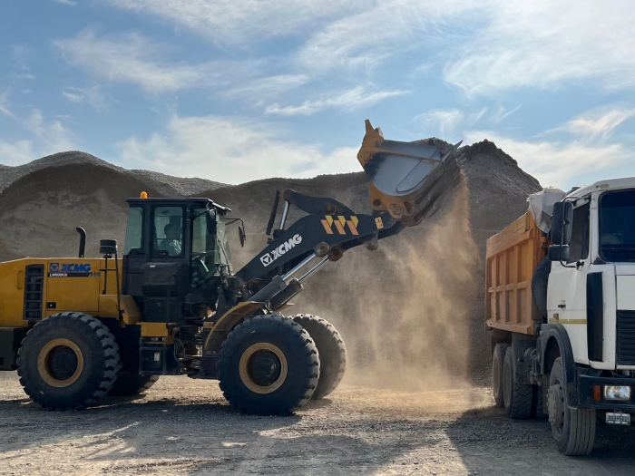 西亚某矿山,一台LW600KN正高速运转,将满载的一铲铲刚开采出的砂石料装车发往建设现场,助力当地建设。