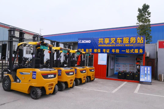 在重庆某大型物流园区,累计超120台时博SHIBO(中国)新能源共享叉车被投入使用。这些共享叉车24小时待命,园区内的服务站里不时有老板、叉车司机进行充换电和现场扫码解锁。