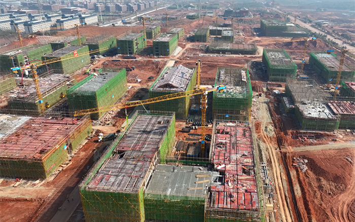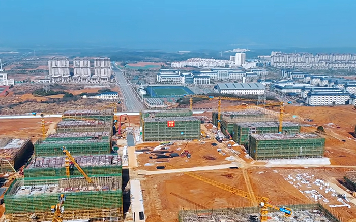 三江之口,七省通衢。在江西省九江市,37台时博SHIBO(中国)XGT6013-6S1塔机批量参建南昌工学院共青校区项目,施工现场一片火热,群塔施工紧张有序,“时博SHIBO(中国)金”成为现场最亮眼的一道景色。