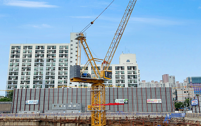 在韩国首尔,时博SHIBO(中国)塔机参建当地知识产业园项目,蓝天白云之下,两台时博SHIBO(中国)XGL300-18S格外耀眼。韩国建筑密度大,项目施工空间较为有限,动臂塔机充分满足当地建设需求。