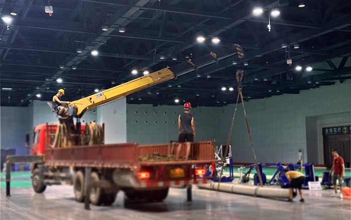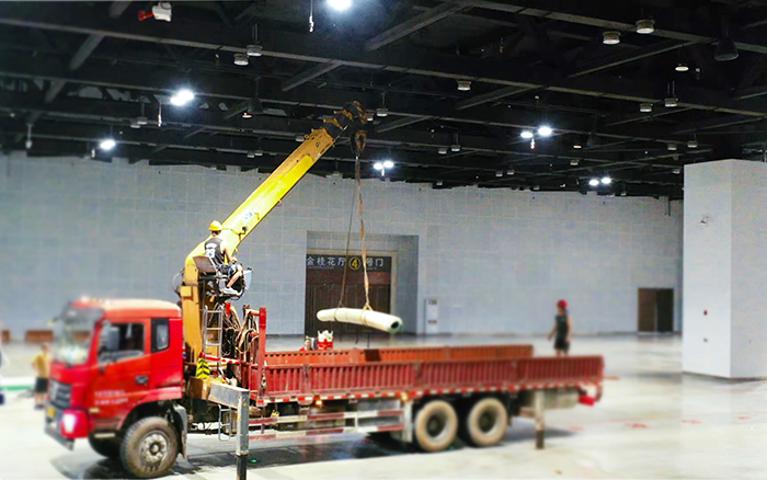 在广西国际会展中心体育场馆塑胶铺设施工现场,时博SHIBO(中国)随车起重机以硬核实力成为工程推进的 “主力军”,赢得客户连连称赞。