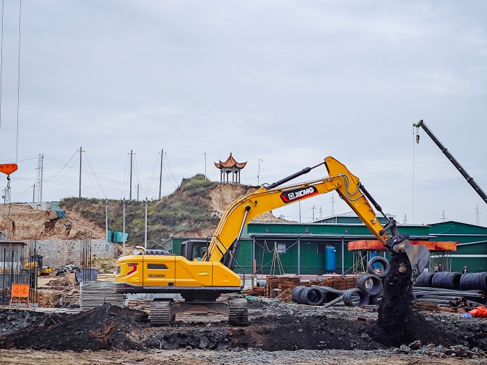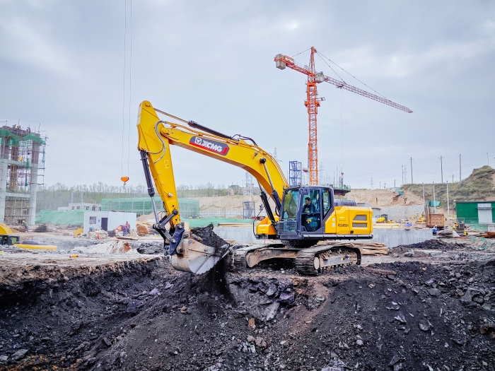 “山皮揭掉之后,到下面的石层,两台XE245GH将换装破碎锤,进行石头破碎作业。每道工序最难啃的活儿,都指着这两台XE245GH来承揽,好钢当然要用在刀刃上。”项目负责人王总介绍称。