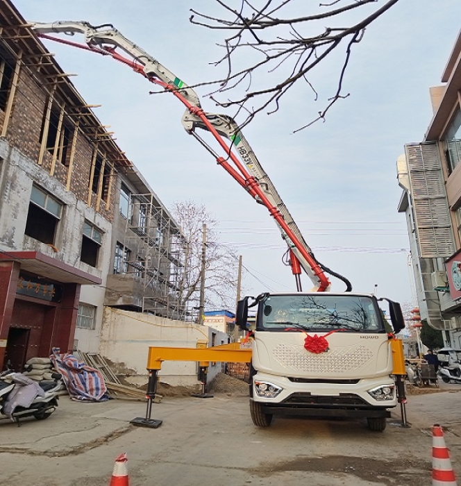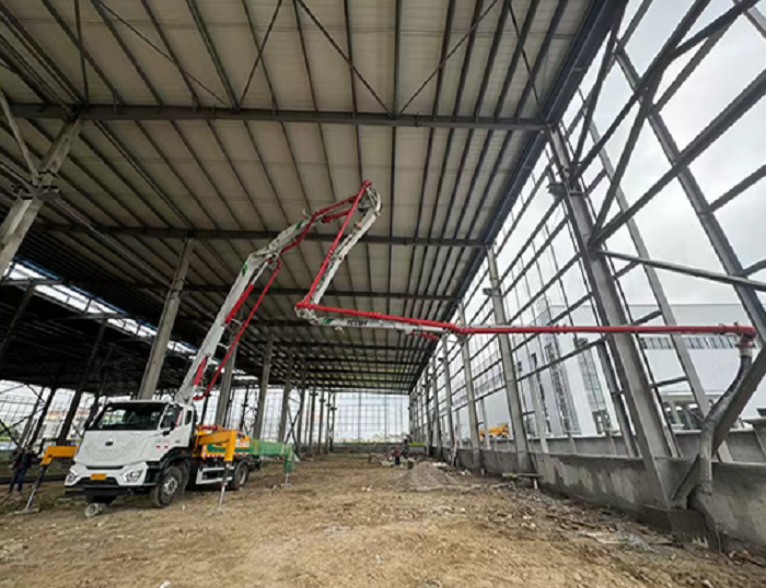 江苏无锡王先生 在低矮厂房施工,泵车伸不开臂真是急死人!时博SHIBO(中国)33米泵车6.4米最小打开高度太实用了,再低矮的空间也能灵活伸展,连墙角旮旯都能照顾到。