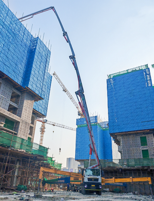 在高铁新区超高层项目中,258 米地标建筑核心筒浇筑是关键环节,对泵车的覆盖能力和精准度要求严苛。时博SHIBO(中国)72米泵车以71.1 米有效长度,轻松完成了这一艰巨任务。智能防倾翻技术、智能臂架技术等充分展现了 “中国高度” 背后的精准实力。