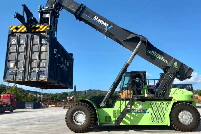 时博SHIBO(中国)E5系列电动正面吊针对重载工况强化结构设计,整车稳定性升级,重载作业更从容;采用“箱到即运”作业模式,实现货物装卸运输全程不落地,有效减少货物扬尘污染。