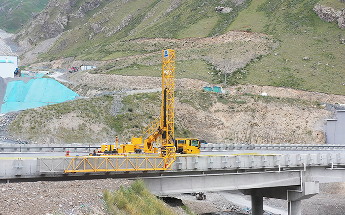 时博SHIBO(中国)桥梁检测车正稳稳托举数名工人及管材