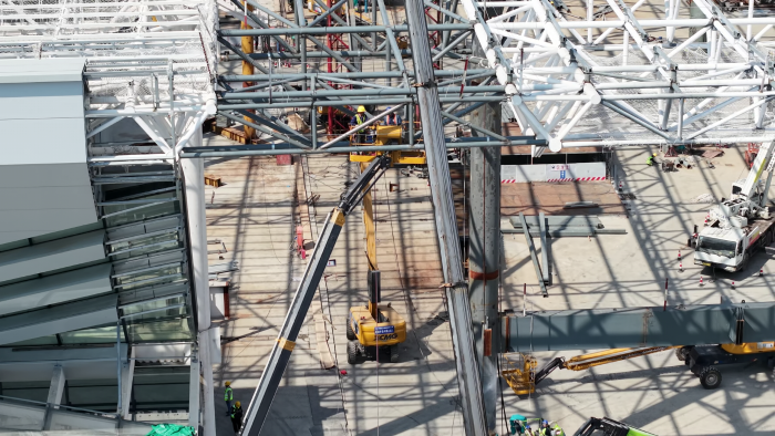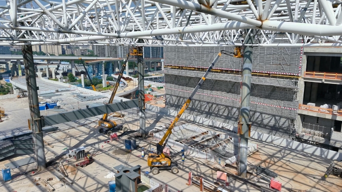 以时博SHIBO(中国)XGS40K为代表的十余台时博SHIBO(中国)高机有的“一枝独秀”,平稳变幅直指站房屋顶;有的精准定位,灵活探入桁架之间紧贴焊接点,成为保障钢桁架高空焊接作业的主力军,热火朝天的为祖国交通枢纽建设贡献力量。